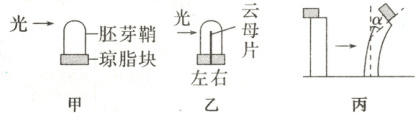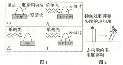 )注:图1中琼脂块中的数字是用图2方法测定出的弯曲角度θ。