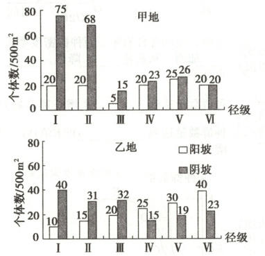 C.甲、乙两地阳坡的种群年龄结构分别为稳定型和衰退型