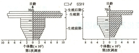 3. (2023·浙江卷)在我国江南的一片水稻田中生活着某种有害昆虫。为了解虫情,先后两次(间隔3天)对该种群展开了调查,前后两次调查得到的数据统计结果如图所示。
