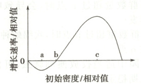 1. (不定项)(2023·山东卷)某种动物的种群具有阿利效应,该动物的种群初始密度与种群增长速率之间的对应关系如图所示。其中种群增长速率表示单位时间增加的个体数。下列分析正确的是(