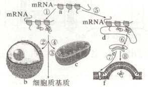 3. (2025·江苏南京学情调研)如图是高等动物细胞内蛋白质合成、加工及定向转运的主要途径示意图,其中a~f表示细胞结构,①~⑧表示生理过程。下列相关叙述错误的是(