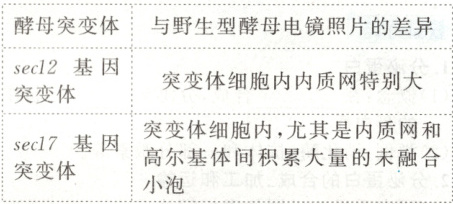据此推测,sec12基因编码的蛋白质的功能是与内质网小泡的形成有关。sec17基因编码的蛋白质的功能是参与膜泡(或“小泡”)与高尔基体的融合。