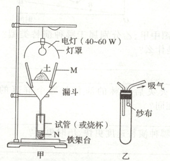 )A.甲装置的花盆壁$M$和放在其中的土壤之间要留一定空隙的目的是便于空气流通