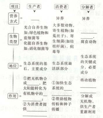 自养;腐生细菌和真菌;有机物;化学能;食物和栖息场所;物质循环