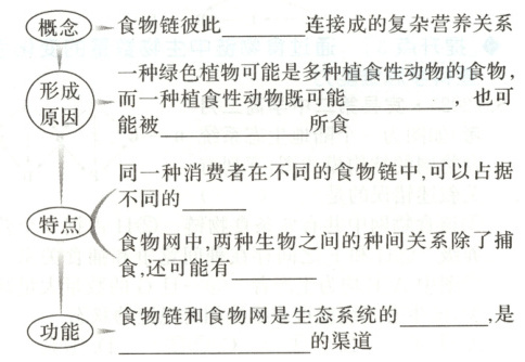 关系。食物网越复杂,生态系统抵抗外界干扰的能力就越强。食物链和食物网是生态系统的营养结构