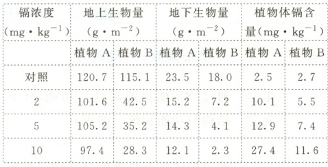 )A.在不同浓度的镉处理下,植物A和B都发生了镉的富集