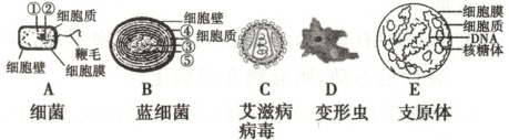 (3)支原体与细菌和蓝细菌相比,细胞结构的主要区别是:支原体没有细胞壁。