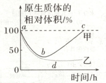 B.$a~b$阶段甲溶液的溶质分子可能进入细胞液