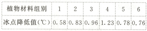 C.将各组植物材料分别放入冰点降低值为0.88℃的蔗糖溶液中,稳定后各组细胞液渗透压均相同