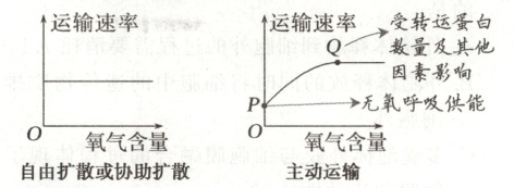 (3)氧气含量对跨膜运输的影响:通过影响细胞呼吸进而影响主动运输的速率。