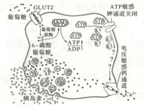 B.葡萄糖进入细胞后,氧化生成ATP,ATP/ADP的值上升使ATP敏感钾通道关闭
