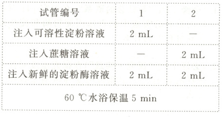 (2) 实验结果和结论:1号试管有砖红色沉淀生成,说明产生了还原糖,淀粉被水解,2号试管不出现砖红色沉淀,说明蔗糖没有被水解。结论: