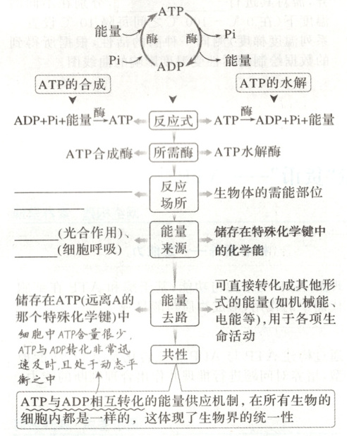 反应相联系,由ATP水解提供能量。如蛋白质的合成。②放能反应:一般与ATP的