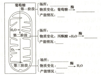 物质变化:丙酮酸 + $H_2O$$\xrightarrow{酶}$ $CO_2$ + [H] + 少量能量