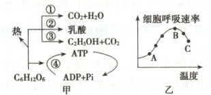 D.图乙中 BC 段与细胞呼吸有关的酶的活性逐渐降低,B 点对应的温度最适合保存果蔬