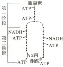 C.产能阶段产生的 NADH 在有氧状态下可以将电子交给呼吸链进行传递而产生更多的 ATP