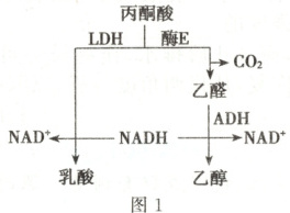 )A.图 1 中 LDH 和酶 E 分别在细胞质基质、线粒体基质中发挥作用