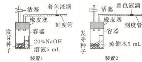 (1) 装置 1 中加入 NaOH 溶液的目的是___,根据着色液滴移动的距离可测出呼吸作用消耗的氧气的体积。