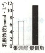 2. (2022·北京卷)在北京冬奥会的感召下,一队初学者进行了 3 个月高山滑雪集训,成绩显著提高,而体重和滑雪时单位时间的摄氧量均无明显变化。检测集训前后受训者完成滑雪动作后血浆中乳酸浓度,结果如图。与集训前相比,滑雪过程中受训者在单位时间内(