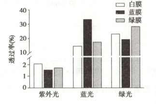 (1) 如图所示,三种颜色的膜对紫外光、蓝光和绿光的透过率有明显差异,其中
