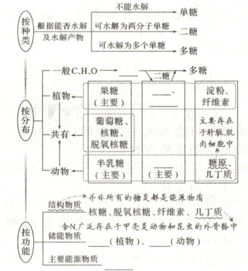 二糖(植物):蔗糖、麦芽糖;二糖(动物):乳糖