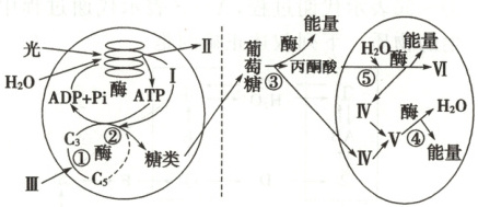 2. (情景探究)如图为水稻叶肉细胞内部分生理过程示意图,其中①~⑤表示过程,Ⅰ~Ⅵ表示物质。请据图回答相关问题。