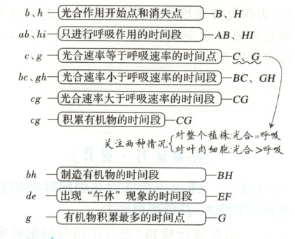 $bc$、$gh$——光合速率小于呼吸速率的时间段——$BC$、$GH$