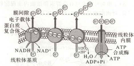)A.${H^{+}}$由线粒体基质进入线粒体膜间隙时,需要载体蛋白的协助