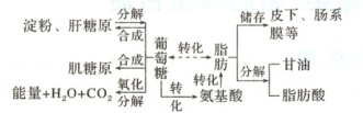 (1) 糖可以大量转化为,如家禽、家畜用谷类育肥。