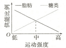 3. (2025·湖南长郡中学期末)糖类和脂肪都是人体内的能源物质,随运动强度的变化,人体内脂肪与糖类供能比例的变化如图所示,下列有关叙述正确的是