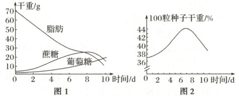 (2) 据图2可知,导致种子萌发初期干重增加的主要元素是什么?请从脂肪和糖类的元素组成及比例角度分析其原因。