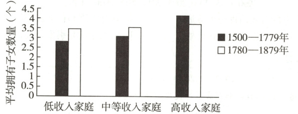 试题调研原创 下图为1500—1779年和1780—1879年英国不同收入家庭平均拥有子女数量的统计情况。由此可知,当时英国