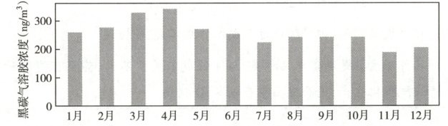 (2)描述瓦里关本底站测得的黑碳气溶胶浓度的年内分布特征。(6分)
