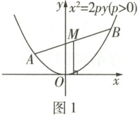 如图1,已知抛物线$x^{2}=2py(p\gt0)$有一条长度为$L(L\gt0)$的动弦$AB$,弦$AB$满足什么条件时,$AB$的中点$M$到$x$轴的距离最小?