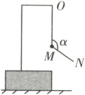 [2025 湖北武汉 3 月二调]如图所示,一物块放置在粗糙水平面上,其上固定一“L”形轻杆,轻绳 ON 的一端 O 固定在杆上,中间某点 M 拴一小球,用手拉住绳的另一端 N。初始时,OM 竖直且 MN 被拉直,OM 与 MN 之间的夹角为 $ \alpha (\alpha > 90°) $,现将小球向右上方缓慢拉起,并保持夹角 $ \alpha $ 不变,在 OM 由竖直被拉到水平的过程,物块始终保持静止,则