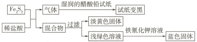 试题调研原创 检验$Fe_2S_3$和稀盐酸反应的产物的实验流程如图所示,该反应的离子方程式为