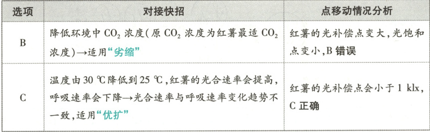 注:光补偿点是光合速率与呼吸速率相等时对应的光照强度;光饱和点是光合速率达到最大值时对应的最小光照强度。