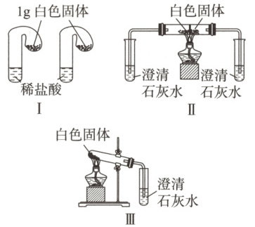 C.加热装置Ⅱ,使澄清石灰水变浑浊一侧的白色固体是${NaHCO_{3}}$