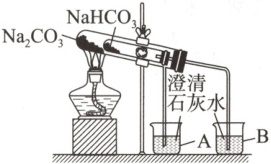 (填“>”或“<”)${NaHCO_{3}}$。(4)证明热稳定性的实验装置中,