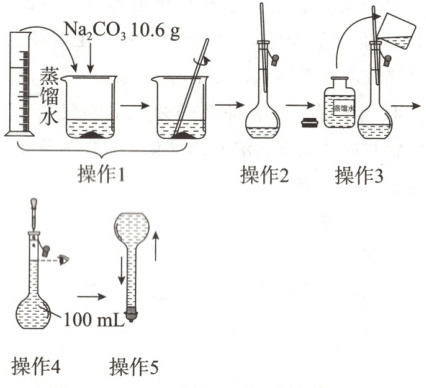5. (2025·江苏苏州田家炳实验高级中学月考)配制一定体积一定物质的量浓度的$Na_2CO_3$溶液的操作过程示意图如下所示。