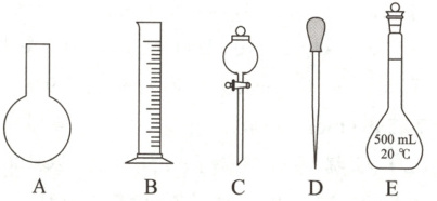 (2)容量瓶是准确配制一定体积、一定物质的量浓度的溶液的仪器。由于溶液具有均一性、稳定性,配制的溶液最后要摇匀,因此使用容量瓶之前应检查它是否漏水,A正确;容量瓶用蒸馏水洗净后,不能用待配溶液润洗,否则会导致配制溶液浓度偏高,B错误;定容时,将蒸馏水小心通过玻璃棒引流至容量瓶中,待液面离刻度线1~2cm时,改用胶头滴管滴加至凹液面与刻度线齐平,C错误;配制溶液时,如果试样是液体,用量筒量取试样后应该先在烧杯中进行稀释,待溶液恢复至室温后,再通过玻璃棒引流转移至容量瓶中进行定容,D错误;当溶液的液面至刻度线后,盖好瓶塞,用食指顶住瓶塞,另一只手托住瓶底,把容量瓶反复上下颠倒、摇匀,就得到需配制的一定浓度、一定体积的溶液,E正确。综上所述,B、C、D错误。