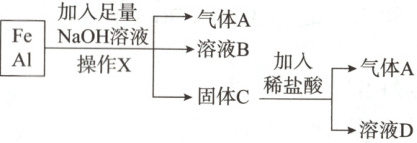 (1)根据分析可知,铝和氢氧化钠反应生成四羟基合铝酸钠和氢气,离子方程式为$2\mathrm{Al}+2\mathrm{OH}^-+6\mathrm{H}_2\mathrm{O}=2[\mathrm{Al(OH)}_4]^-+3\mathrm{H}_2\uparrow$;操作X为过滤。