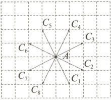 ⑧从点$A$出发,沿下方,指向小正方形顶点$C_8$,$\overrightarrow{AC_8}$。