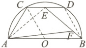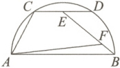 例 1 如图,$ C,D $ 是以 $ AB $ 为直径的半圆圆周上的两个三等分点,$ E $ 为线段 $ CD $ 的中点,$ F $ 为线段 $ BE $ 上靠近点 $ B $ 的一个四等分点。设 $ \overrightarrow{AB}=\boldsymbol{a},\overrightarrow{AC}=\boldsymbol{b} $,则 $ \overrightarrow{AF}= $(