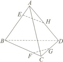 例 4 如图,在三棱锥 A - BCD 中,侧棱和底面边长均为 6,H,G 分别是 AD,CD 的中点,E,F 分别是 AB,BC 上的点,且 $\frac{CF}{FB} = \frac{AE}{EB} = \frac{1}{3}$。