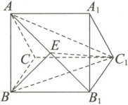 例 3 如图,在直三棱柱 $ABC - A_{1}B_{1}C_{1}$ 中,$AB\perp BC,AA_{1} = AB = BC = 2$,$E$ 为线段 $AB_{1}$ 的中点。求直线 $EC_{1}$ 与平面 $BB_{1}C_{1}C$ 所成角的正切值。