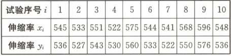例 5(全国乙卷)某厂为比较甲、乙两种工艺对橡胶产品伸缩率的处理效应,进行 10 次配对试验,每次配对试验选用材质相同的两个橡胶产品,随机地选择其中一个用甲种工艺处理,另一个用乙种工艺处理,测量处理后的橡胶产品的伸缩率,甲、乙两种工艺处理后的橡胶产品的伸缩率分别记为 $x_i,y_i(i = 1,2,·s,10)$,试验结果如下: