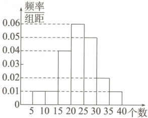 (2) 某校排球社的学生为训练动作组织了垫排球比赛,根据排球社 50 名学生的垫球个数画的频率分布直方图如图所示,所有学生的垫球个数都在 $5\sim40$ 之间,估计垫球个数的样本数据的第 75 百分位数是(