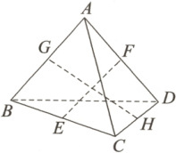例 6 如图,已知正四面体 $ ABCD $(所有棱长均相等)的棱长为 1,$ E $,$ F $,$ G $,$ H $ 分别是四面体 $ ABCD $ 各棱的中点,设 $ \overrightarrow{AB} = \boldsymbol{a} $,$ \overrightarrow{AC} = \boldsymbol{b} $,$ \overrightarrow{AD} = \boldsymbol{c} $,试用向量法解决下列问题: