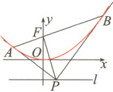 3. 如图,$AB$是抛物线$x^2 = 2py(p > 0)$的一条过焦点的弦(焦点弦),分别过$A,B$作抛物线的切线,交于点$P$,连接$PF$,则有以下结论: